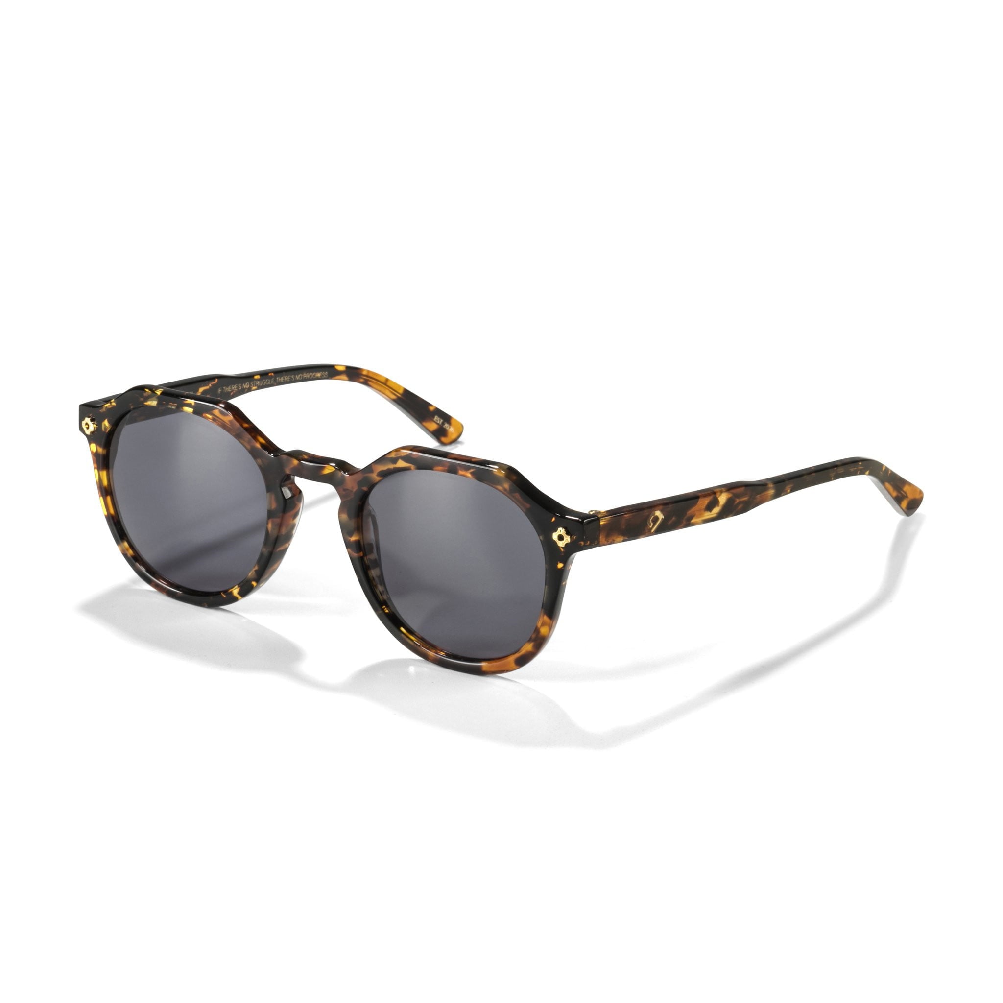 Inspired by the story of a man who walked between worlds, The Douglass II continues with its high contrast design. Nowhere else has the combination of sharp angles & soft lines looked so good before. This time, the diamond top bridge adds comfortable style, while the frames sport a more lightweight and sleeker design. Etched inside the right temple arm are the words of a man so influential to those aspiring to achieve greatness, “If there’s no struggle, there’s no progress.” - Douglass.